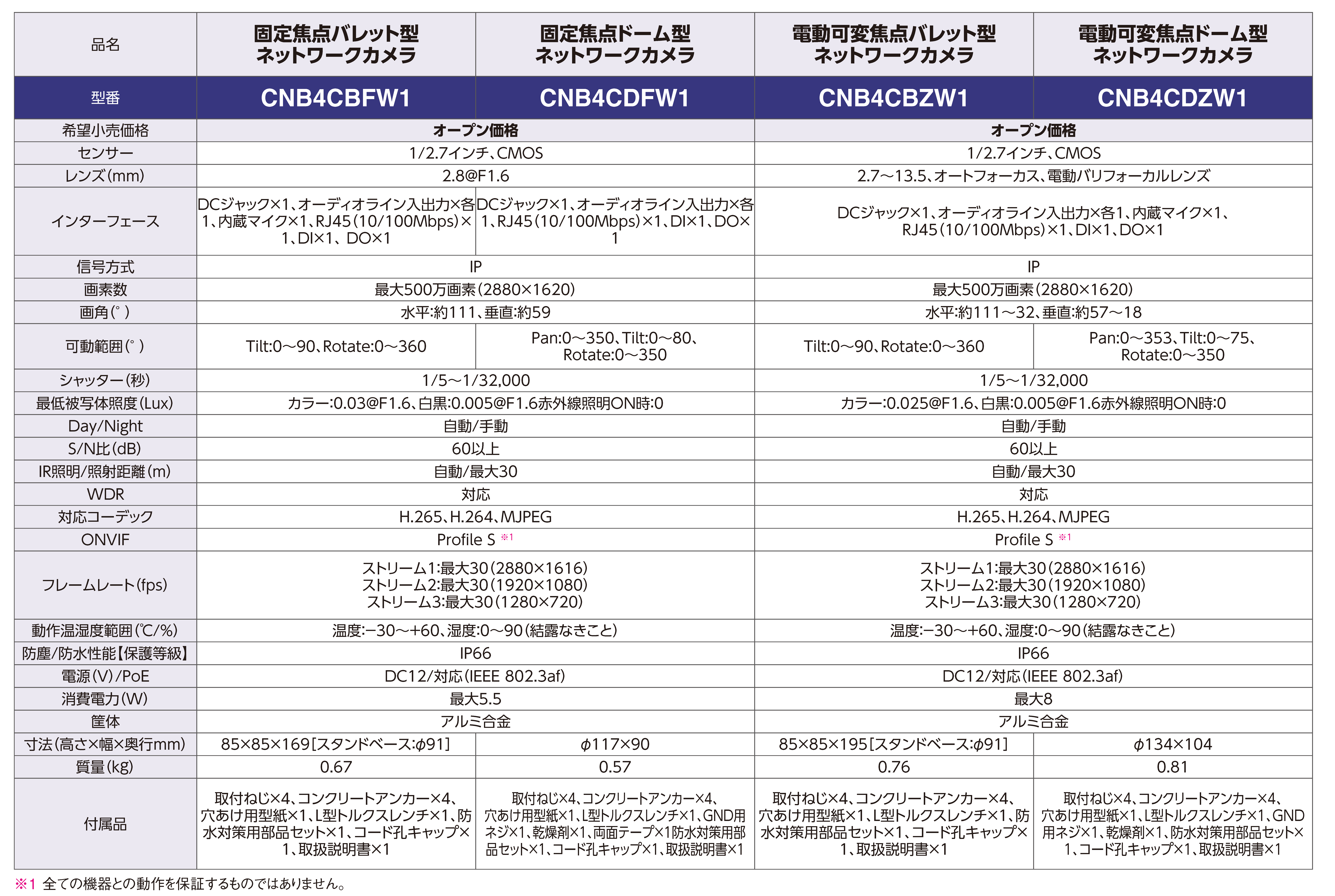電動可変焦点バレット型ネットワークカメラ 〈CNB4CBZW1〉 |