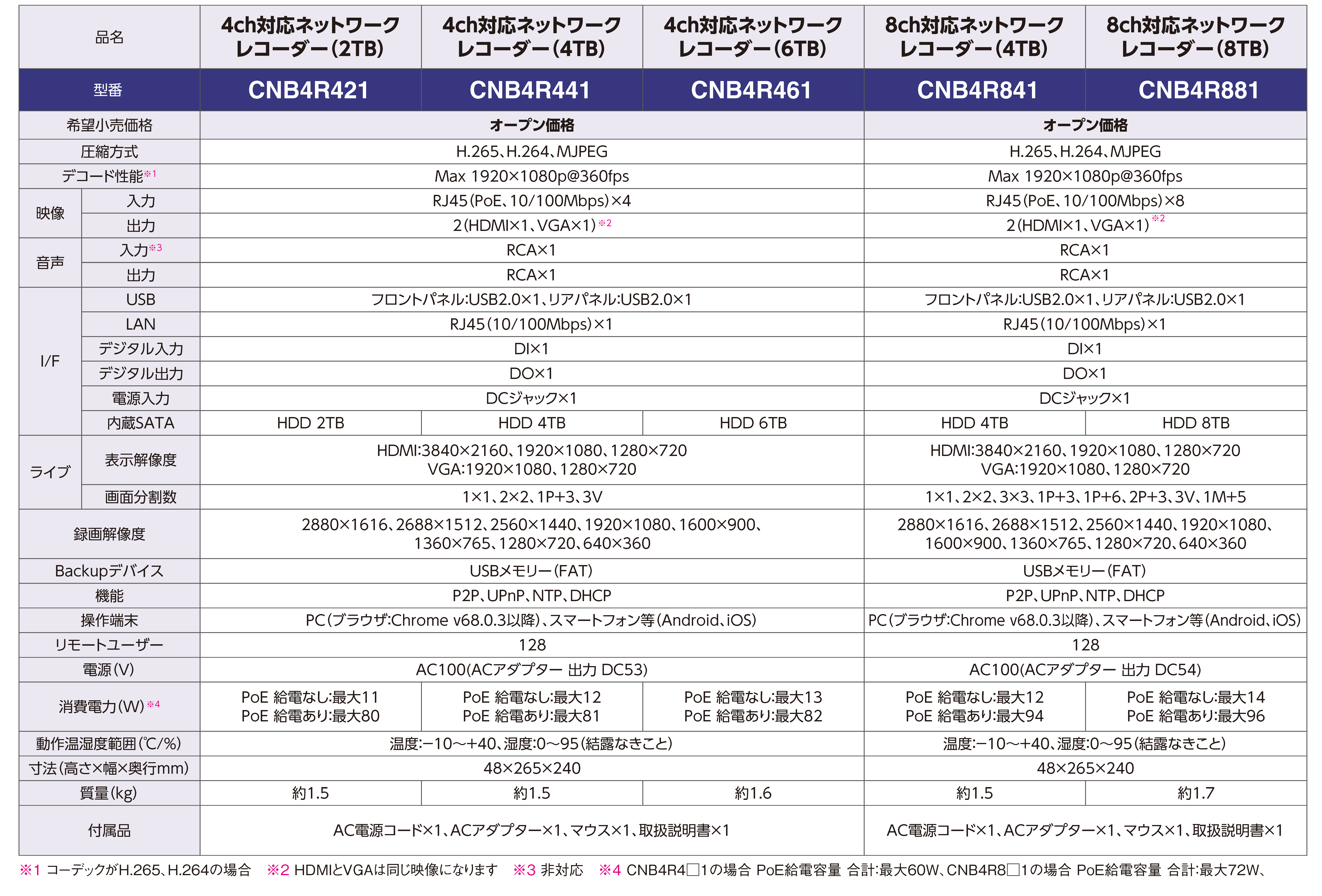 8ch対応ネットワークレコーダー 〈CNB4R8□1〉 |