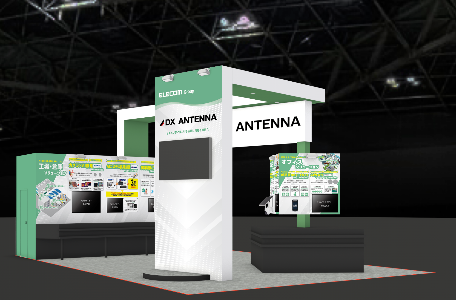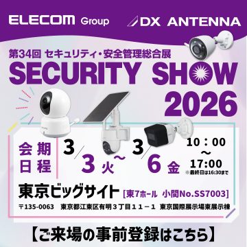 DXアンテナブースでは、ホームセキュリティに最適なワイヤレスカメラなど、安心・安全な暮らしを支える製品をご紹介いたします。また、店舗・商業施設におけるカスタマーハラスメント対策や人手不足対策、工場・倉庫におけるトレーサビリティの確保および業務効率化、オフィスにおける労務管理や入退室管理まで、セキュリティ用途にとどまらず、さまざまな業務課題の解決に資するご提案をいたします。